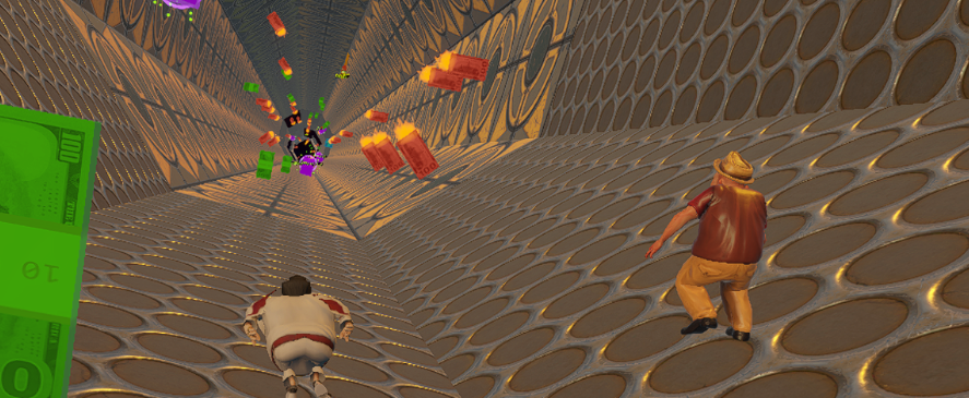 - The player runs at a constant speed with tunnel rotations.
