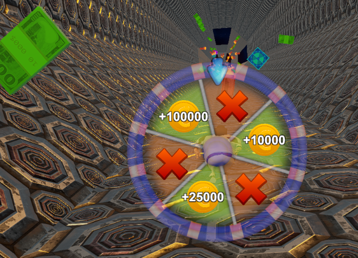 Debt Pickup & Gambling Mechanics: Implemented pickups that can either reduce or add debt, forming the basis for risk/reward gameplay. Developed a fortune spin wheel and slot machine mechanic that allows players to gamble their money for potential rewards.