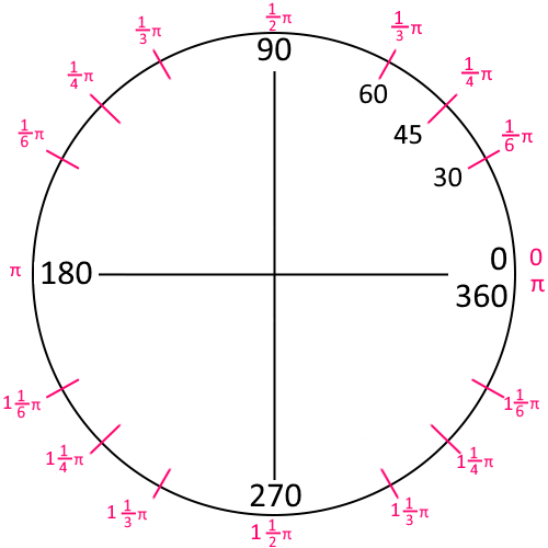 Example: Convert π/3 radians to degrees: degrees = (π / 3) × 180 / π = 60°