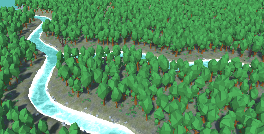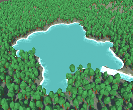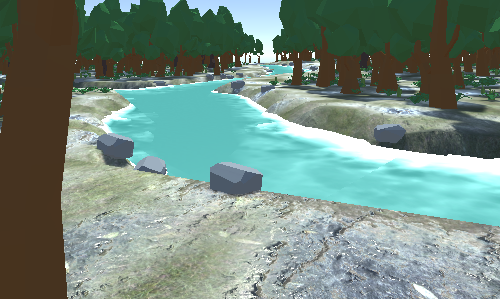 The rivers in broadleaf forests are often fast-moving, which means that the water washes away the dirt and exposes the rocks beneath. To simulate this, the program generates rocks around the river and the lake.