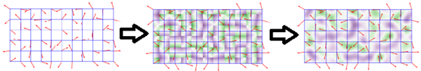 The three steps are visually explained below. The red arrows depict the vectors, and the green and purple colors depict the height values: