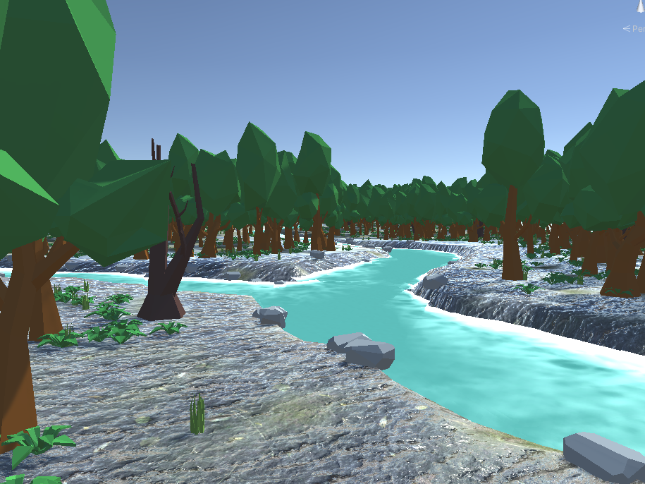The rivers in broadleaf forests are often fast-moving, which means that the water washes away the dirt and exposes the rocks beneath. To simulate this, the program generates rocks around the river and the lake.