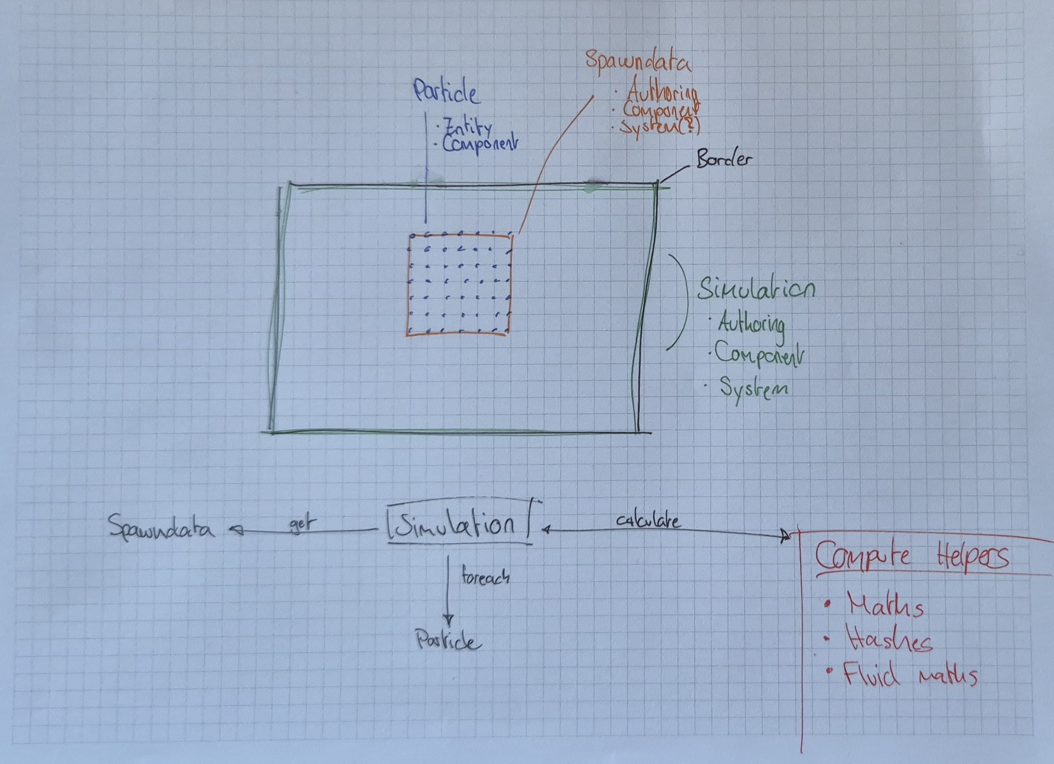 The goal is to transform the Fluid-Sim project to work with the ECS framework instead of the compute shaders. To start off I decided to implement the 2D variation of the Fluid-Sim.