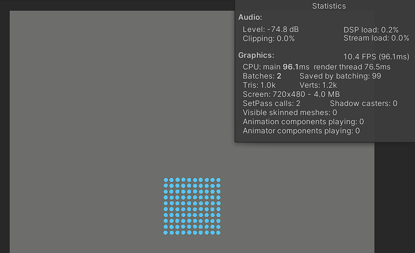I have come up with a testing pipeline to track progress regarding the changes I do in the code and how much improvement I gain by implementing additional DOTS tools. I have set up a few different milestones to test what performance impact the have: