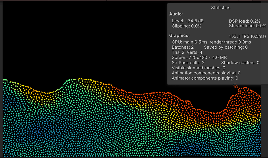 Because the amount of particles doesn’t change during the simulation I replaced these buffers with arrays and prepare them during runtime as shown as in section Instantiate Particles:
