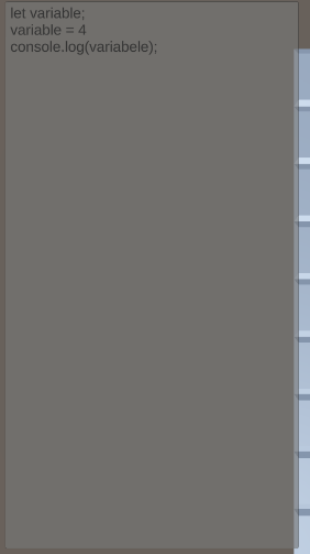 In this example, the player is supposed to change the “variable = 4” line to “variable = 4 + 4”. As you can see there is no distinction about which parts can and cannot be changed or if lines are supposed to be added.